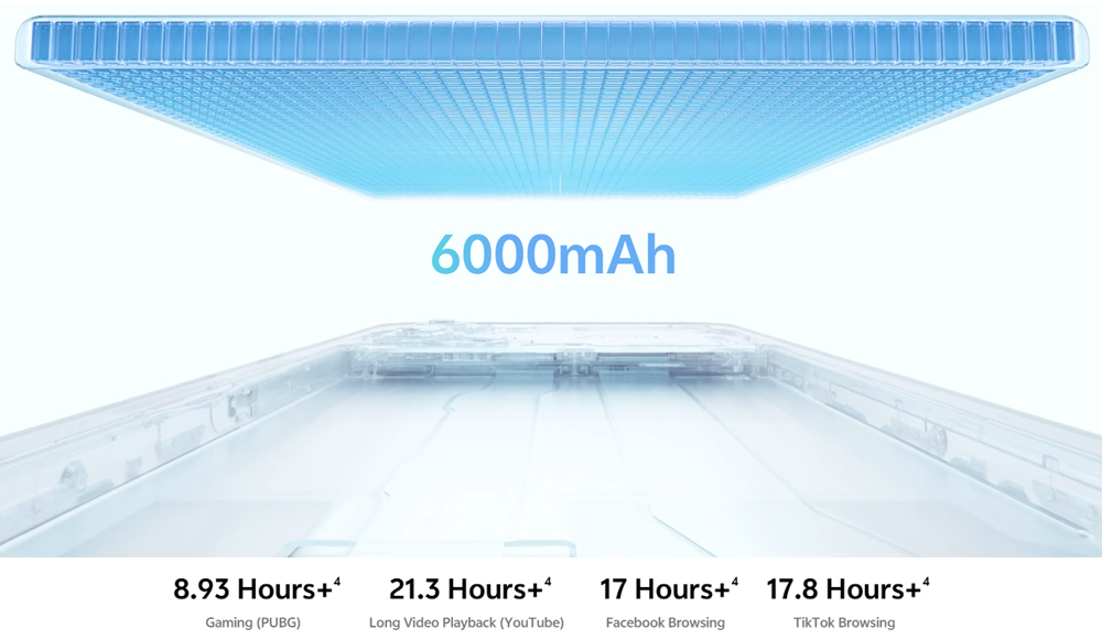 Manfaatkan Baterai 6000 mAh yang tahan lama dengan mode Penghemat Baterai untuk masa pakai baterai yang sangat lama.